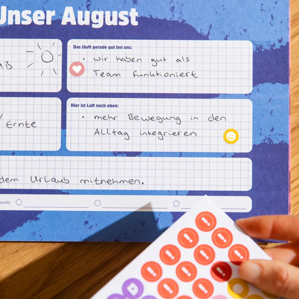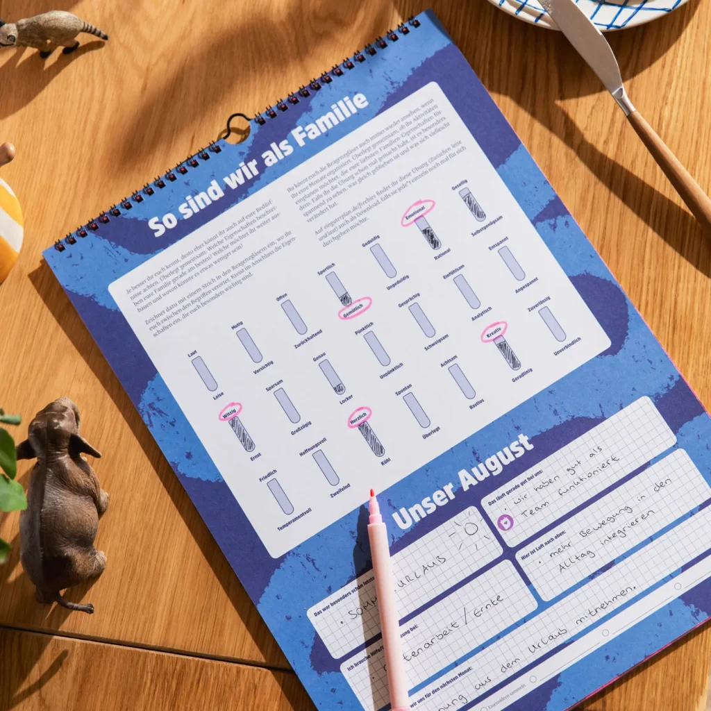 Irgendwo zwischen Trubel der Familienorganisation und straffer Planung passiert es nicht nur, sich Zeit für sich selbst zu nehmen, sondern auch Raum zu schaffen für das Miteinander. In unserem Wandkalender findet ihr auf jeder Rückseite der Monatsansichten kurze Reflexionen, Tipps und Anregungen, die eure Gemeinschaft stärken und gute Gespräche anregen. Sie sind für den Austausch gedacht und schon Kinder ab etwa 4 Jahren können mitmachen.