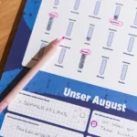 Hej, einen super schönen Kalender habt ihr da gemacht und auf die Montasreflexionen mit meinen Kindern bin ich schon sehr gespannt. Einziger Vorschlag zur Verbesserung: Anderes Papier…und zwar solches, auf das man mit allen Stiften schreiben kann, so dass das Geschriebene nicht verwischt. Wollte heute unsere Namen oben in die Zeilen stempeln und das hat leider gar nicht geklappt (auch nach langem Trocknen), sondern es hat es alles verwischt. Zum Glück konnte man es wirklich ganz wieder abwischen und nun stehen sie halt mit Folienstift drinnen…(auch nicht schlimm) und für die Eintragungen halt ab sofort Bleistift und Kuli, denn auch der Fineliner ist leider verwischt … mir persönlich würde da ja ganz einfaches, etwas stärkeres Druckerpapier (oder vll. Graspapier 😉 ) reichen. Find ich von der Haptik auch viel schöner. Trotzdem freuen wir uns sehr auf das kommende Jahr mit eurem Kalender, denn wirklich alles andere (Design, Aufteilung, Monatsreflexionen, etc.) spricht sehr für diesen wunderbaren Kalender.