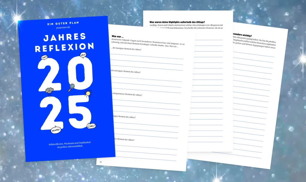 25 Fragen für mehr Erkenntnis und Klarheit: In unserer großen Jahresreflexion findest du Raum, dich mit deinem Jahr 2025 zu befassen. Reflektiere die letzen 12 Monate, übe dich in Dankbarkeit und halte alles fest, was dich bewegt hat.