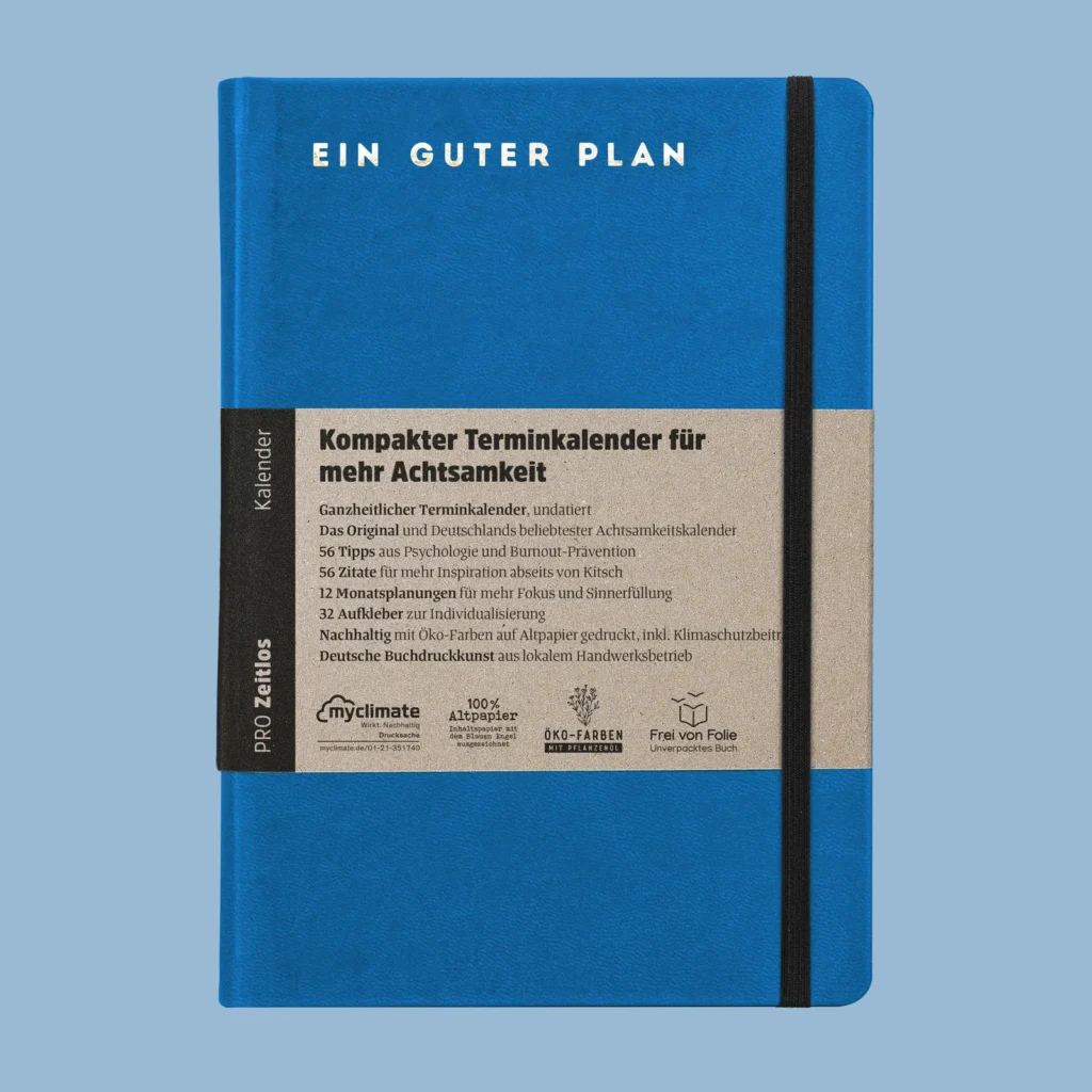 Ich nutze Ein Guter Plan jetzt seit Jaahren. Habe mich durch viele verschiedene Kalender-Modelle durchprobiert und Bücher verschenkt. Ich liebe es die Produkte zu nutzen. Für mich hat sich in den Jahren herauskristallisiert, dass ich undatiert am besten arbeiten kann, damit an den Tagen, an denen ich meine Orgastrukturen nicht ganz einhalten kann, keine demotivierenden Lücken im Kalender entstehen. Ich liebe, dass der Pro undatiert die Timestamps hat und jede Kalenderwoche noch eine ganze Doppelseite Platz für Notizen hat. Die können dan auch mal als ne Form journal genutzt werden, um die Achtsamkeit auch auf diese Seiten mitzunehmen. Und die Quali ist auch supi. Ich nutze meinen Kalender eher als Gebrauchsgegenstand und er hält teilweise länger als ein Jahr. Danke für eure schönen Kalender!